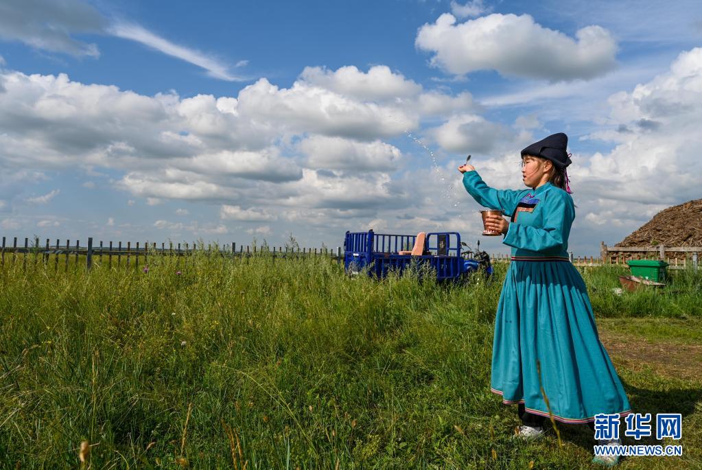 盛夏時節(jié)的呼倫貝爾草原美不勝收,吉布斯樂瑪一邊幫助父母放牛,一邊學(xué)習(xí),空閑時間與足球為伴,假期生活分外充實。