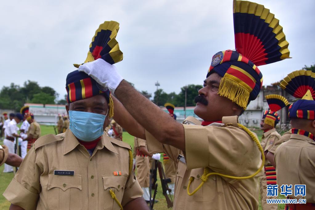 8月15日,警察在印度阿薩姆邦參加獨(dú)立日慶?;顒?dòng)。