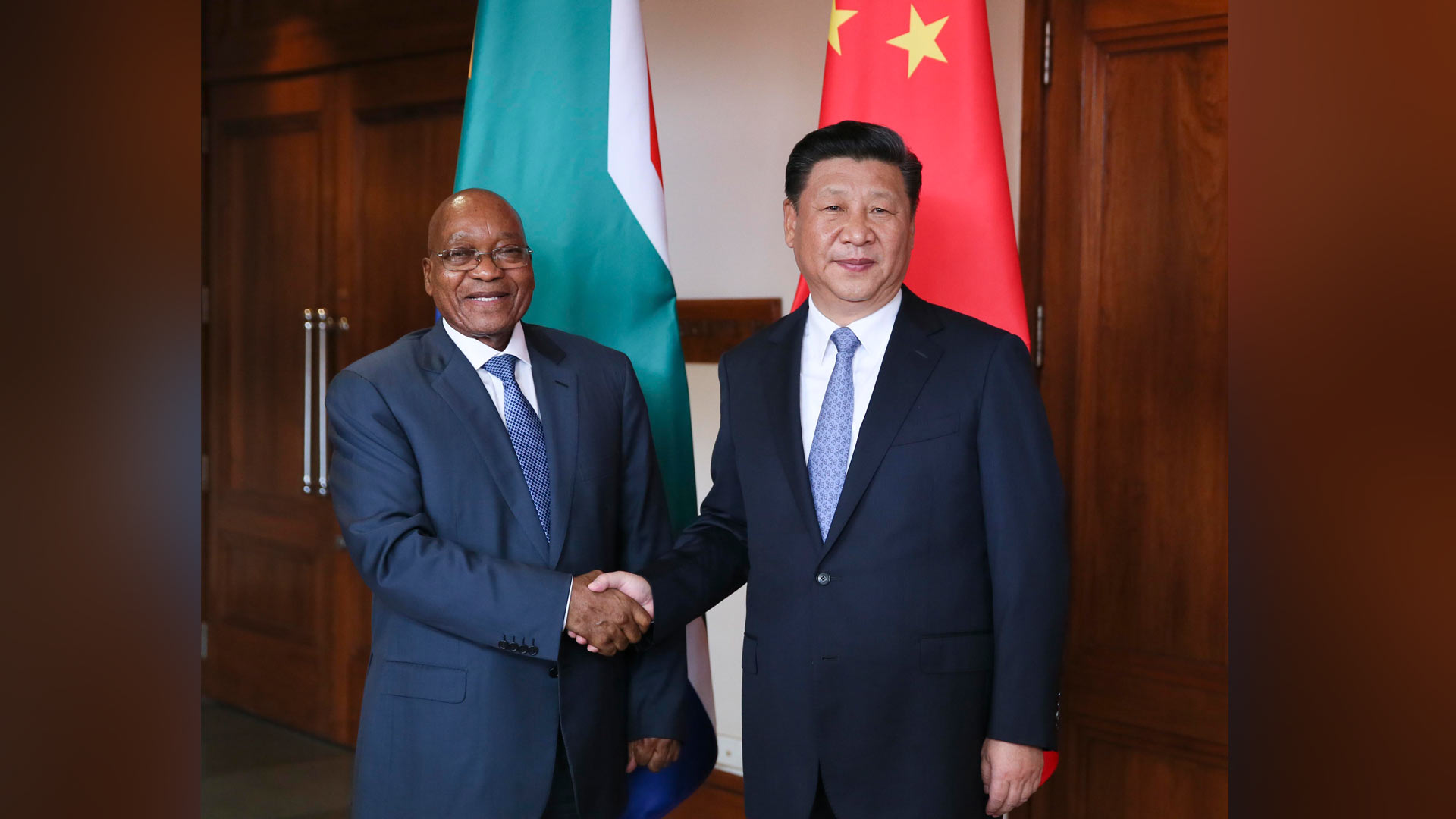 10月15日,國家主席習近平在印度果阿會見南非總統(tǒng)祖馬。新華社記者 蘭紅光 攝