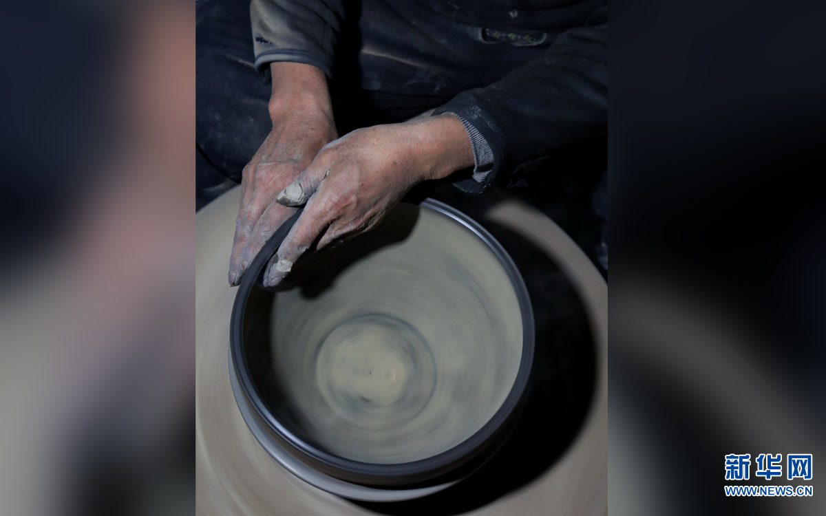 1月13日,在河北張家口蔚縣南留莊鎮(zhèn)白河?xùn)|村,王啟杰在拉坯。