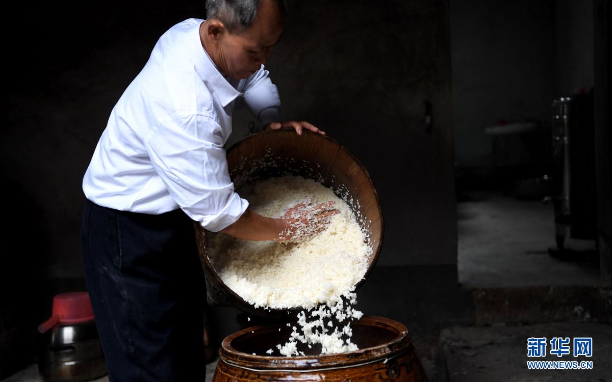 1月11日,黃保豐在祠堂內(nèi)釀造米酒。臘月里,福建省龍巖市連城縣芷溪村一座幾代傳承的祠堂大院里,酒香濃郁更勝往常。在這里,黃保豐師傅用傳統(tǒng)手藝釀造客家米酒,為電商平臺(tái)的“年貨節(jié)”活動(dòng)忙碌準(zhǔn)備著。黃保豐自1980年起就在村里釀酒,30多年來(lái),他的生活幾乎一成不變——早上6點(diǎn)多起來(lái)生火,上鍋蒸制浸好的糯米,然后保持爐灶里的火一整天不熄滅。曾經(jīng),米酒深受人們喜愛,村里年節(jié)慶賀、喜事喪事,都要用到米酒,黃保豐一年釀酒能用掉3萬(wàn)斤米。近些年,傳統(tǒng)米酒的生意卻漸漸慘淡下來(lái)。 2013年,芷溪村村民楊天吉在廈門打拼10年后,特別想念家鄉(xiāng)的米酒,回到家鄉(xiāng)拜訪釀酒老師傅黃保豐,卻發(fā)現(xiàn)他的生意已經(jīng)快做不下去了。楊天吉便與黃保豐共同改良制作工藝,釀出“新派”甜米酒,推出檸檬、桂花等新口味,并成立網(wǎng)上酒鋪“酒狐”,通過(guò)淘寶等互聯(lián)網(wǎng)渠道銷售客家傳統(tǒng)手工米酒。他還利用微博、微淘等社交類互聯(lián)網(wǎng)平臺(tái),介紹客家傳統(tǒng)文化。目前,“酒狐”的年銷量達(dá)數(shù)萬(wàn)瓶。面對(duì)新的消費(fèi)習(xí)慣,人們抓住互聯(lián)網(wǎng)電商的發(fā)展機(jī)遇,開辦網(wǎng)絡(luò)店鋪,積極利用“淘寶年貨節(jié)”等促銷活動(dòng),讓傳統(tǒng)手藝和手工產(chǎn)品在互聯(lián)網(wǎng)時(shí)代煥發(fā)出新的活力。新華社記者 金良快 攝
