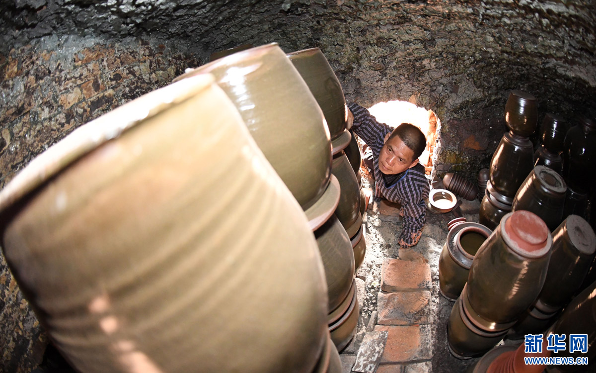 1月5日,在廣西賓陽(yáng)縣鄒圩鎮(zhèn)下窯村,鄒圩陶器制作技藝傳承人顏長(zhǎng)希在窯里查看已經(jīng)燒制好的陶瓷產(chǎn)品。廣西賓陽(yáng)縣鄒圩陶瓷制作已有200多年歷史,制作時(shí)采用本地特有的紅泥,經(jīng)過(guò)采泥、練泥、制坯、晾坯、裝窯、燒制、出窯等多道工序,工藝考究復(fù)雜,被列入廣西非物質(zhì)文化遺產(chǎn)名錄。目前,擁有123戶700多人的下窯村,近70%的村民從事陶瓷生產(chǎn)。近年來(lái),由于受到鐵、塑料等同類產(chǎn)品的沖擊,鄒圩陶器產(chǎn)品的銷售市場(chǎng)不斷滑坡。在當(dāng)?shù)赜嘘P(guān)部門的引導(dǎo)扶持下,當(dāng)?shù)靥账噹煾挡粩嗝鲃?chuàng)新,開發(fā)研制更多門類的產(chǎn)品,諸如陶瓷電茶壺、陶瓷電飯鍋等,適應(yīng)市場(chǎng)的需求。他們還在探索將傳統(tǒng)手工藝與體驗(yàn)式鄉(xiāng)村游結(jié)合,讓百年陶藝重?zé)ㄉ鷻C(jī)。新華社記者 陸波岸 攝