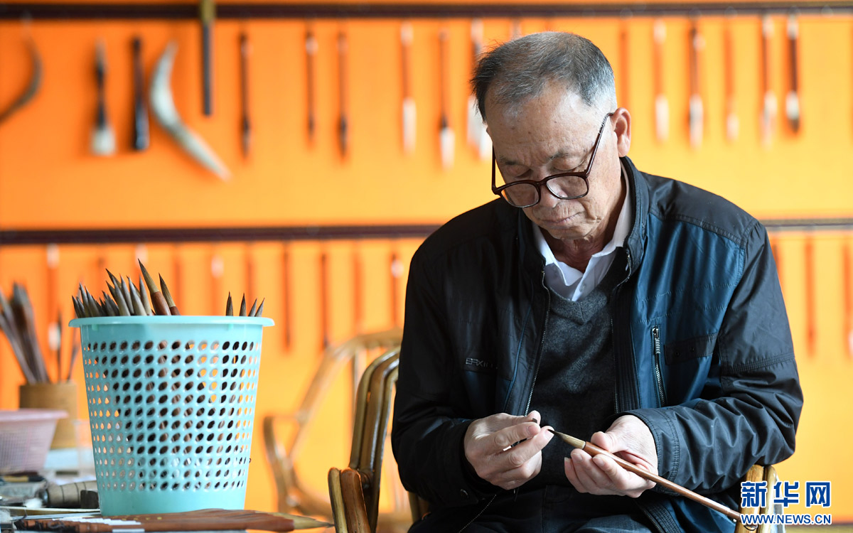 1月4日,在賓陽(yáng)縣儒供毛筆生產(chǎn)有限公司,65歲的老工藝人羅儒供在檢查毛筆質(zhì)量。在廣西賓陽(yáng)縣賓州鎮(zhèn)大羅村,毛筆傳統(tǒng)制作工藝代代相傳至今已有300多年的歷史。20世紀(jì)70年代,毛筆加工是大羅村的一個(gè)重要產(chǎn)業(yè),全村300多人投入毛筆加工生產(chǎn),全年生產(chǎn)銷售毛筆超過(guò)100萬(wàn)支,大羅毛筆成為遠(yuǎn)近聞名的品牌。隨著毛筆銷售市場(chǎng)逐漸萎縮,目前,賓陽(yáng)縣熟練掌握毛筆傳統(tǒng)生產(chǎn)工藝的手工藝人不超過(guò)10人,年紀(jì)大的已經(jīng)超過(guò)80歲。在當(dāng)?shù)卣龀纸⒌娜骞┟P生產(chǎn)有限公司,目前從事毛筆生產(chǎn)的只有6名傳統(tǒng)手工藝人,年生產(chǎn)毛筆2萬(wàn)多支,每個(gè)人月收入不超過(guò)2000元。雖然如此,為了這門傳統(tǒng)技藝的傳承,幾名老工藝人在狹窄的市場(chǎng)空間和低微的經(jīng)濟(jì)效益中不舍地堅(jiān)守著。新華社記者 陸波岸攝