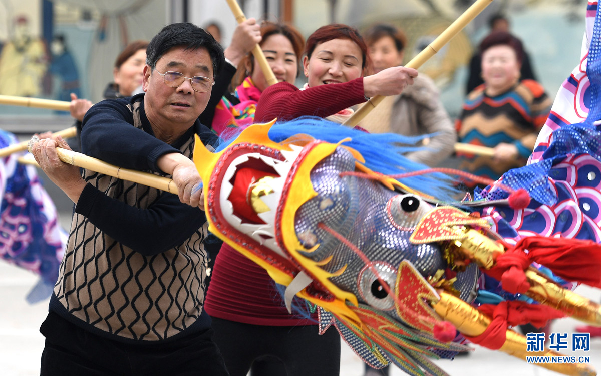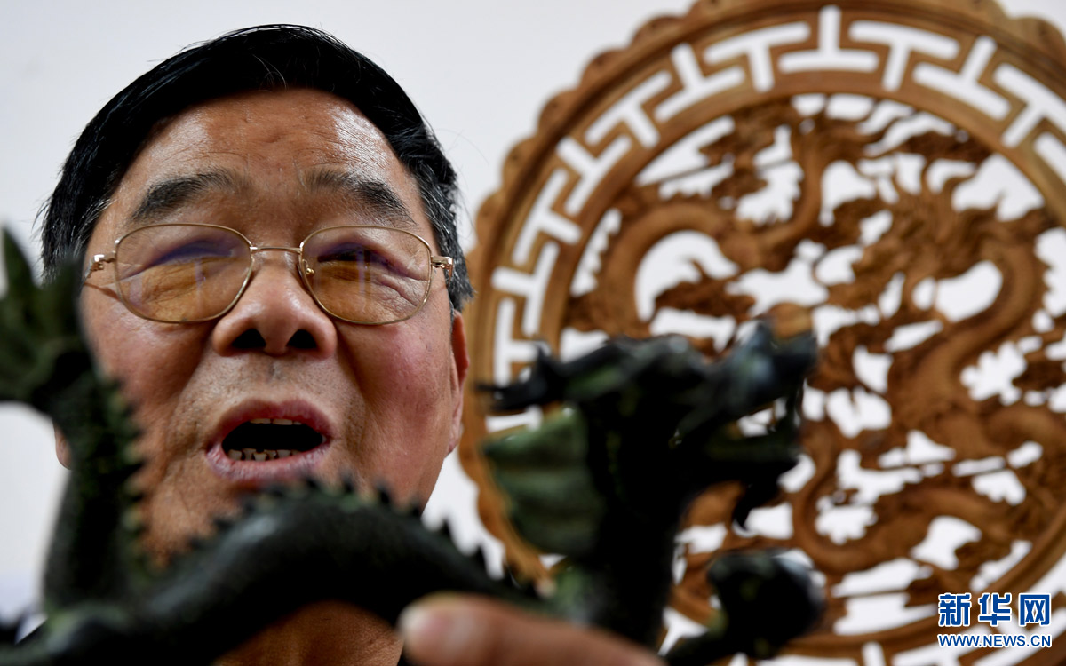 1月15日,閆克元在展示他收集的有關(guān)龍的藏品。陜西省漢中市漢臺(tái)區(qū)龍江文化站黨支部書記閆克元,經(jīng)過(guò)十幾年努力與探索,傳承發(fā)展當(dāng)?shù)氐奈椠埣妓?,豐富基層群眾精神文化生活,帶動(dòng)村民發(fā)展文化產(chǎn)業(yè),被鄉(xiāng)親們親切地稱為“龍的傳人”。 2003年,閆克元牽頭成立“龍江飛龍藝術(shù)團(tuán)”。他130余次登門拜訪當(dāng)?shù)?0多名制作龍舞道具、表演龍舞技藝的老藝人,用錄音、錄像、拍照等形式整理出大量資料,并通過(guò)展覽和培訓(xùn)進(jìn)行推廣。藝術(shù)團(tuán)由成立最初的50人壯大到如今的200多人,年演出180余場(chǎng),表演節(jié)目從單一的舞龍發(fā)展到彩龍、草龍、板凳龍等龍舞系列節(jié)目,演出范圍從漢中擴(kuò)展到省內(nèi)外。在他的推動(dòng)下,龍江鎮(zhèn)26個(gè)村先后建起了民間藝術(shù)表演隊(duì),表演內(nèi)容涵蓋舞龍、舞獅、社火、彩船、大秧歌等十幾個(gè)種類,每年演出超過(guò)700場(chǎng)。新華社記者 陶明 攝