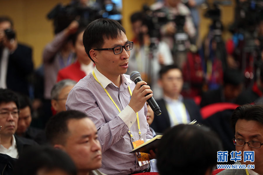 10月21日,十九大新聞中心舉辦記者招待會(huì),邀請(qǐng)國(guó)家發(fā)展改革委黨組書記、主任何立峰,副主任張勇,副主任寧吉喆介紹以新發(fā)展理念為引領(lǐng),推進(jìn)中國(guó)經(jīng)濟(jì)平穩(wěn)健康可持續(xù)發(fā)展有關(guān)情況,并回答記者提問。圖為經(jīng)濟(jì)日?qǐng)?bào)記者提問。新華網(wǎng) 郝廣鵬攝