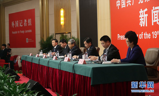 ??? 10月22日,十九大新聞中心舉辦記者招待會,邀請教育部、民政部、人力資源社會保障部、住房城鄉(xiāng)建設(shè)部、國家衛(wèi)生計生委相關(guān)負責人介紹滿足人民新期待,保障改善民生有關(guān)情況,并回答記者提問。圖為記者招待會現(xiàn)場。新華網(wǎng) 郝廣鵬攝