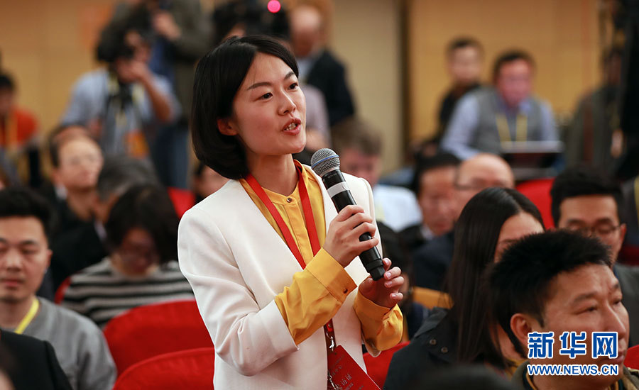 10月23日,十九大新聞中心舉辦記者招待會,邀請中央財經(jīng)領(lǐng)導(dǎo)小組辦公室副主任楊偉民,環(huán)境保護部黨組書記、部長李干杰介紹踐行綠色發(fā)展理念,建設(shè)美麗中國有關(guān)情況,并回答記者提問。圖為中新社記者提問。新華網(wǎng) 郝廣鵬攝