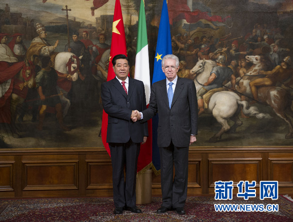 賈慶林會見意大利總理蒙蒂