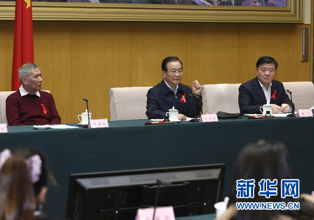 ????11月30日,國務院總理溫家寶在北京中南海與艾滋病感染者、艾滋病致孤兒童、上訪人員、醫(yī)務人員、科研人員、志愿者和有關(guān)國際組織代表座談。(來源:新華社記者 龐興雷 攝)