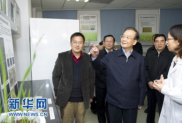 ??? 12月13日,國務院總理溫家寶到北京中關(guān)村考察并與部分企業(yè)負責人座談。這是溫家寶在未名凱拓農(nóng)業(yè)生物技術(shù)有限公司考察。 新華社記者黃敬文 攝