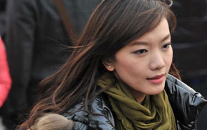 [兩會花絮]會場外的紅衣靚影