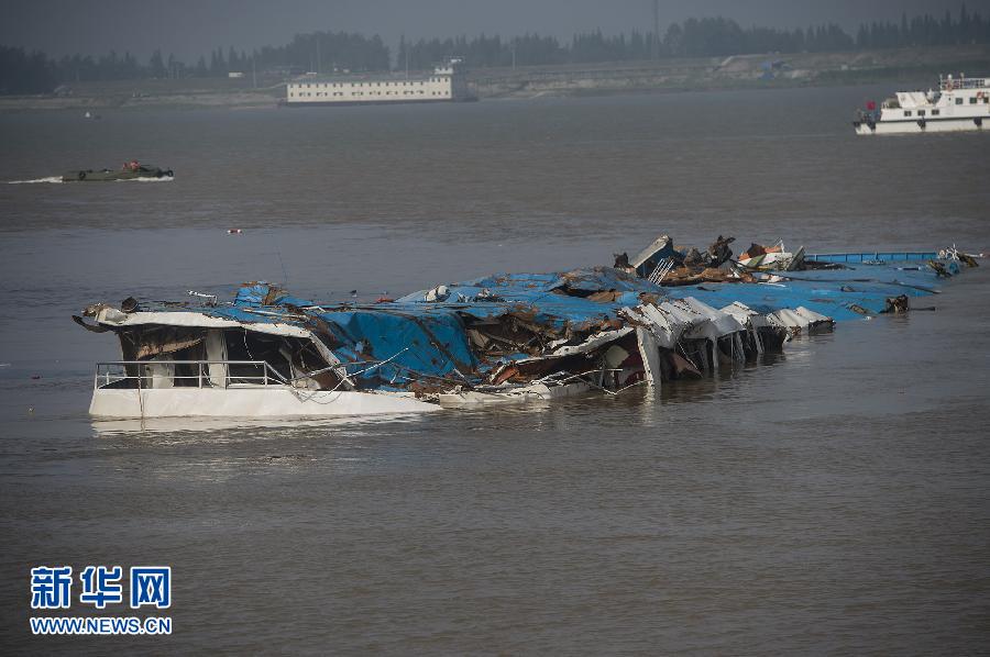 長(zhǎng)江“東方之星”完全扶正 但只露出藍(lán)色船頂