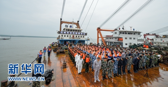 哀悼遇難者活動持續(xù)了三分鐘,隨后,救援人員繼續(xù)投入工作,盡全力搜尋遇難者。目前,“東方之星”遇難者人數(shù)已升至431人,有14人生還,仍有11人下落不明,遇難者善后工作正在進行。