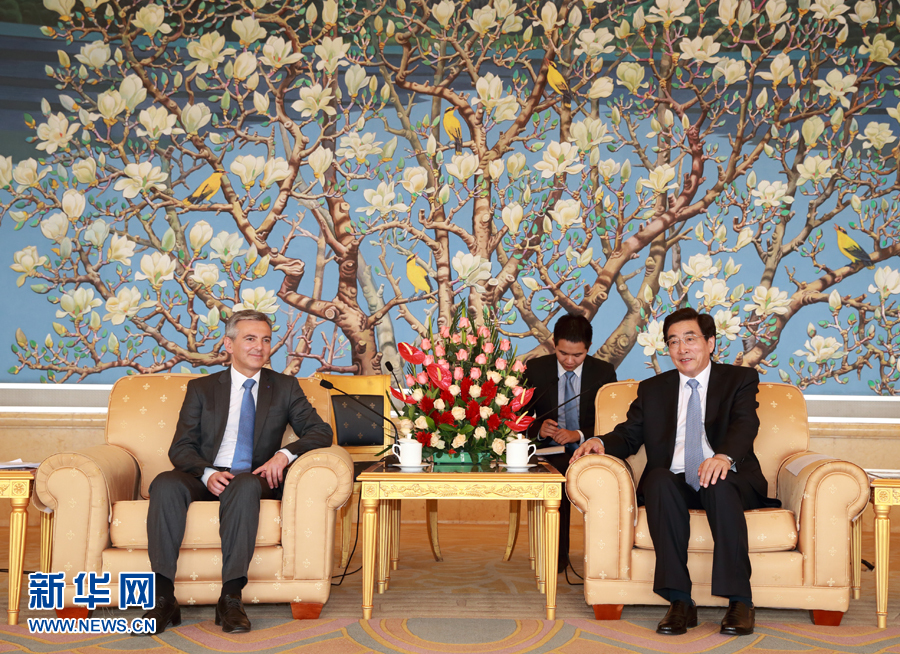 ??? 7月14日,中共中央政治局委員、北京市委書(shū)記郭金龍?jiān)诒本?huì)見(jiàn)馬耳他國(guó)民黨領(lǐng)袖布蘇蒂爾。 新華社記者 丁海濤 攝