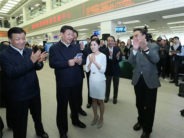 新華社北京2月20日新媒體專電 19日上午,中共中央總書記、國家主席、中央軍委主席習近平來到新華社調研。在新聞發(fā)稿中心,一位編輯介紹說,在新華社客戶端上,很多網民給記者點贊??倳洶磩印盀槿珖侣劰ぷ髡唿c贊”頁面上的點贊按鈕,屏幕上立即閃現“點贊+1”。采編人員對總書記說,您的鼓勵就是我們的動力。
