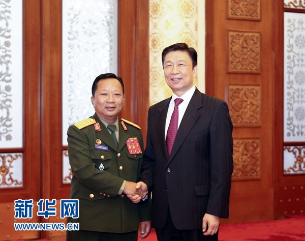 7月19日,中共中央政治局委員、國家副主席李源潮在北京會見老撾人民革命黨中央政治局委員、國防部長占沙蒙。 新華社記者丁林攝
