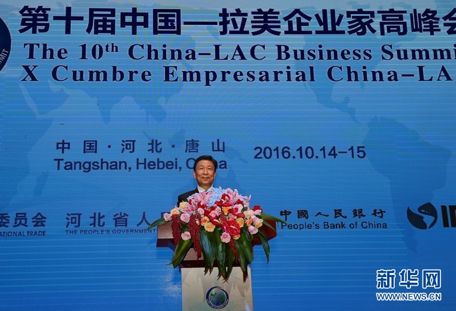 10月14日,第十屆中國-拉美企業(yè)家高峰會在河北唐山舉行,中國國家副主席李源潮出席開幕式并致辭。 新華社記者楊世堯攝