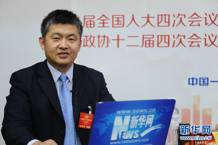 ??? 2016年3月12日,全國政協(xié)委員,內(nèi)蒙古蒙草公司董事長兼總經(jīng)理王召明做客新華網(wǎng)兩會訪談。圖為王召明在訪談現(xiàn)場。新華網(wǎng) 賈海元 攝