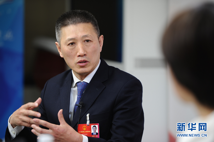 ??? 2016年3月13日,全國人大代表,煙臺張?jiān)F咸厌劸乒煞萦邢薰究偨?jīng)理周洪江做客新華網(wǎng)兩會訪談。圖為周洪江在訪談現(xiàn)場。新華網(wǎng) 盧志佳 攝