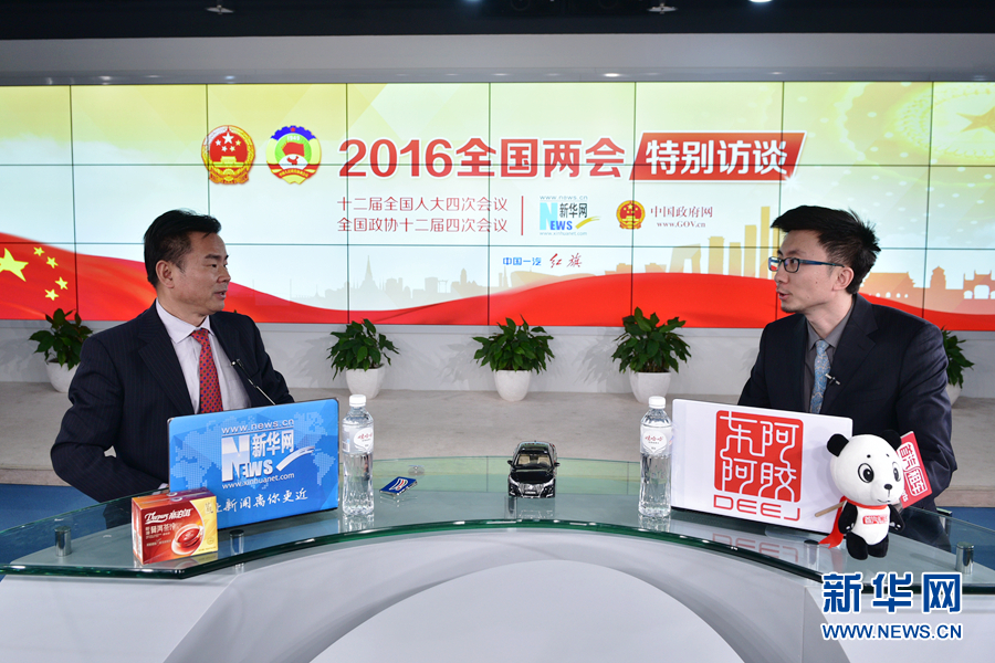 ????2016年3月13日,全國(guó)人大代表、海南省三沙市委書(shū)記、市政府市長(zhǎng)肖杰做客新華網(wǎng)兩會(huì)訪談直播間。圖為肖杰回答主持人提問(wèn)。新華網(wǎng) 郭小天 攝
