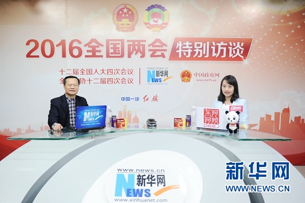 圖為全國人大代表、湖南省益陽市委書記胡忠雄做客2016新華網(wǎng)兩會(huì)訪談直播間。新華網(wǎng) 盧志佳 攝