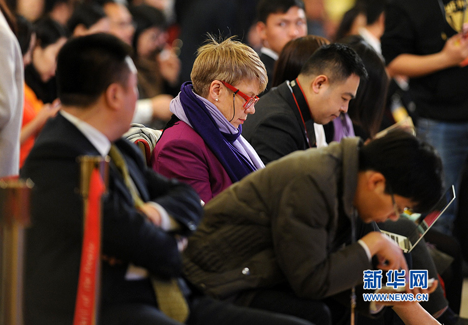 3月16日上午,國務(wù)院總理李克強(qiáng)在人民大會(huì)堂三樓金色大廳會(huì)見采訪十二屆全國人大四次會(huì)議的中外記者并回答記者提出的問題。圖為早早趕到記者會(huì)現(xiàn)場(chǎng)的各路媒體記者。新華網(wǎng)/中國政府網(wǎng) 陳競(jìng)超 攝