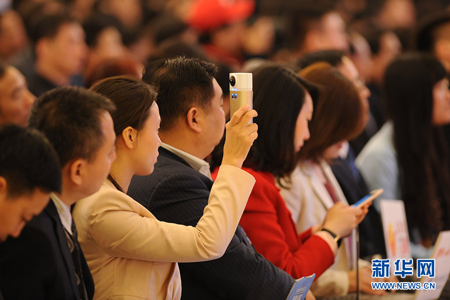 3月16日上午,國(guó)務(wù)院總理李克強(qiáng)在人民大會(huì)堂三樓金色大廳會(huì)見采訪十二屆全國(guó)人大四次會(huì)議的中外記者并回答記者提出的問題。圖為新華網(wǎng)VR報(bào)道總理記者會(huì)。新華網(wǎng)/中國(guó)政府網(wǎng) 陳杰攝