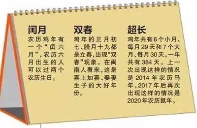 一些細(xì)心的網(wǎng)友發(fā)現(xiàn),今年是農(nóng)歷丁酉雞年,雞年有兩個(gè)立春日,出現(xiàn)“一年兩頭春”歷法現(xiàn)象。所謂“一年兩頭春”也稱“雙春年”,是指在農(nóng)歷的一年中有兩個(gè)立春之日。具體到農(nóng)歷雞年來(lái)說(shuō),2017年1月28日開(kāi)始進(jìn)入農(nóng)歷雞年,而直到2018年的2月16日才會(huì)迎來(lái)下一個(gè)農(nóng)歷新年,所以農(nóng)歷丁酉雞年就包含了兩個(gè)立春日,即雞年的正月初七立春(2017年2月3日)和同年臘月十九(2018年2月4日)再次立春。