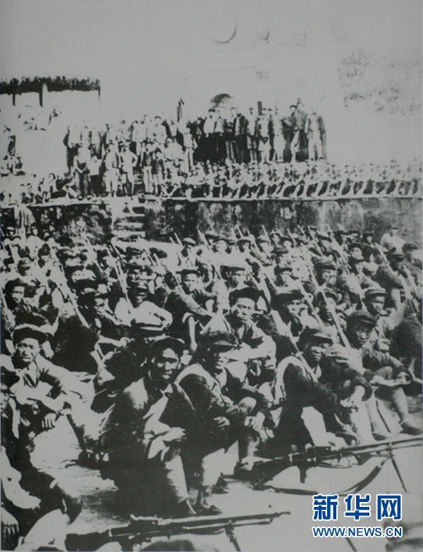 1935年9月16日,紅25軍在陜西省延川縣永平鎮(zhèn)(今永坪)同陜甘紅軍會(huì)師。圖為會(huì)師時(shí)的情景(資料照片)。 新華社發(fā)