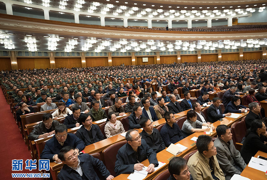 中央宣傳部、中央直屬機(jī)關(guān)工委、中央國(guó)家機(jī)關(guān)工委、教育部、中央軍委政治工作部、中共北京市委在北京人民大會(huì)堂舉辦學(xué)習(xí)貫徹黨的十九大精神中央宣講團(tuán)首場(chǎng)報(bào)告會(huì)(11月3日攝)。新華社記者 丁海濤 攝