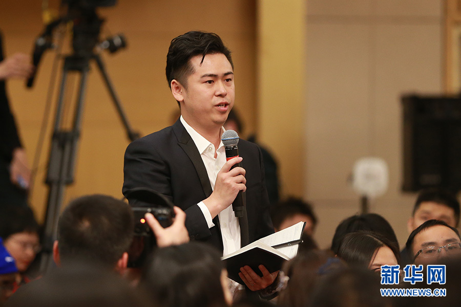 3月11日,十二屆全國人大五次會議新聞中心舉行記者會,邀請科技部部長萬鋼、秘書長徐建培就“2016年創(chuàng)新驅動發(fā)展戰(zhàn)略實施進展成效和2017年重點工作”的相關問題回答中外記者的提問。圖為深圳衛(wèi)視記者提問。新華網(wǎng)/中國政府網(wǎng) 王健 攝