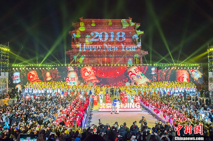 2018年1月1日,2018北京新年倒計(jì)時活動暨北京冰雪文化旅游節(jié)開幕式在北京永定門南廣場舉行。2018-01-01 08:49:51