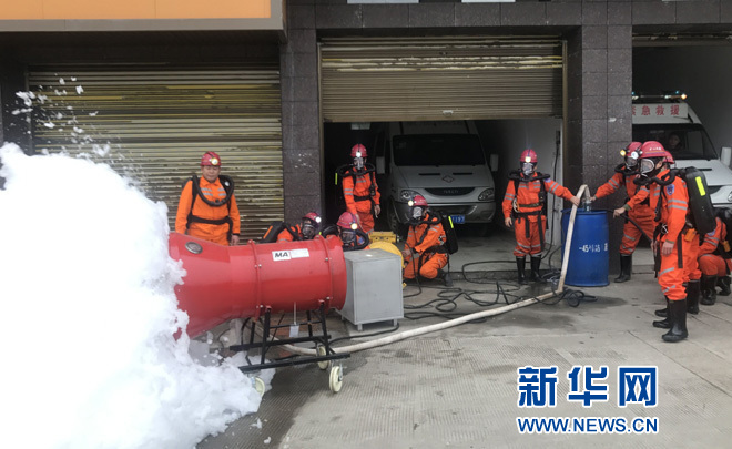 邵陽市礦山救護(hù)支隊(duì)隊(duì)員在日常技能訓(xùn)練。新華網(wǎng) 于子茹 攝