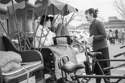“年輕人文化水平高、思維開闊,能夠把對文化、對人生的新觀念、新感悟融入講解過程中,并且運用現在先進的手段將其傳播出去。”看著車隊里新來的年輕人,“后海八爺”車隊負責人李永浮感嘆:“老北京文化,還是要靠年輕人傳承下去?!?/p>
