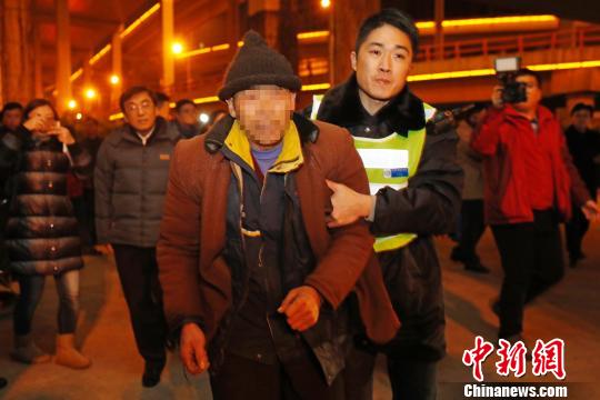 生活無著露宿街頭人員在救助工作人員的幫助下前往救助站避寒。 殷立勤 攝