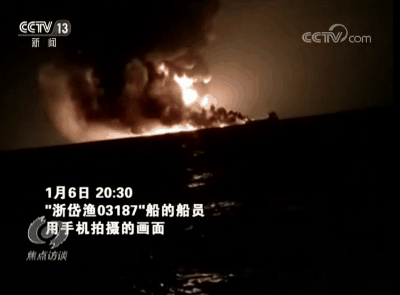 從撞船到“桑吉”輪沉沒,這八天里究竟發(fā)生了些什么? 整個事件還是要從2018年1月6日的那個晚上說起。當(dāng)晚,首先發(fā)現(xiàn)兩艘商船碰撞起火的是正行駛在返港途中的中國漁船——浙岱漁03187船的船員。
