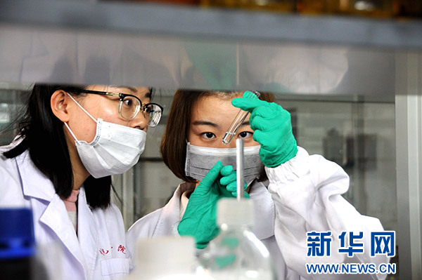1月19日,蘭州交通大學(xué)天然藥物開發(fā)研究所研究人員進(jìn)行生物農(nóng)藥試驗(yàn)。新華社發(fā)(王銘禹 攝)