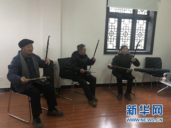 村民們在拉二胡。 新華網(wǎng) 張世祥 攝