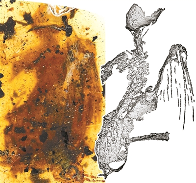 琥珀中發(fā)現(xiàn)一億年前古鳥