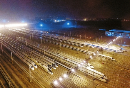 接受完整修后,動車組便??康酱孳噲觯却{(diào)度命令,次日凌晨再出發(fā),繼續(xù)奔向全國各地。