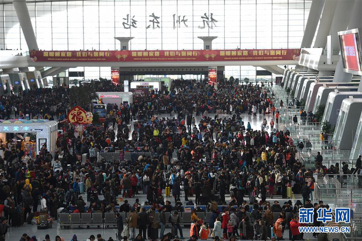 杭州火車東站候車大廳,旅客在排隊(duì)等待檢票進(jìn)站。新華社記者黃宗治攝