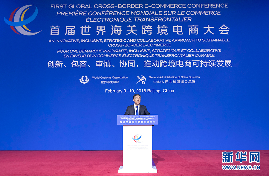 2月9日,中共中央政治局常委、國(guó)務(wù)院副總理汪洋在北京出席首屆世界海關(guān)跨境電商大會(huì)并發(fā)表主旨演講。 新華社記者王曄攝