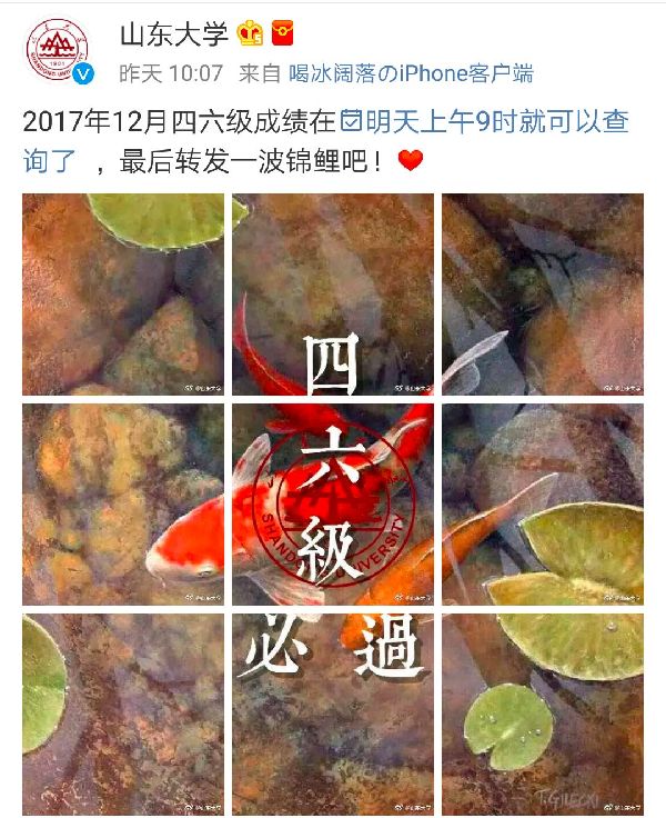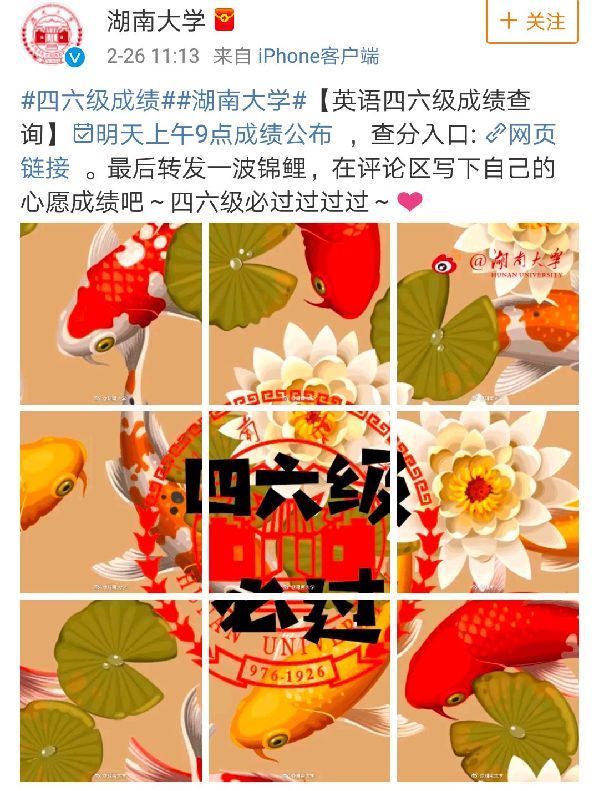 與此同時,昨天不少高校微博也調(diào)皮了,有說“轉(zhuǎn)發(fā)錦鯉”的: