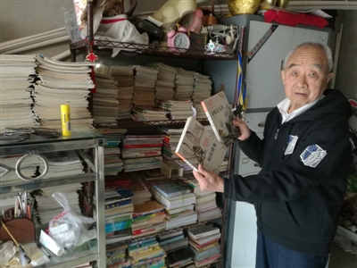 劉圖恥每個(gè)星期都要去收兩三次廢報(bào)紙,每個(gè)單位個(gè)把月去一趟,收到廢舊報(bào)刊后,劉圖恥會(huì)進(jìn)行分揀,好的書刊留下來,其余的賣到廢品收購點(diǎn)。劉圖恥買的書,有的是廢品站“淘來”的,有的是書攤上購買的。