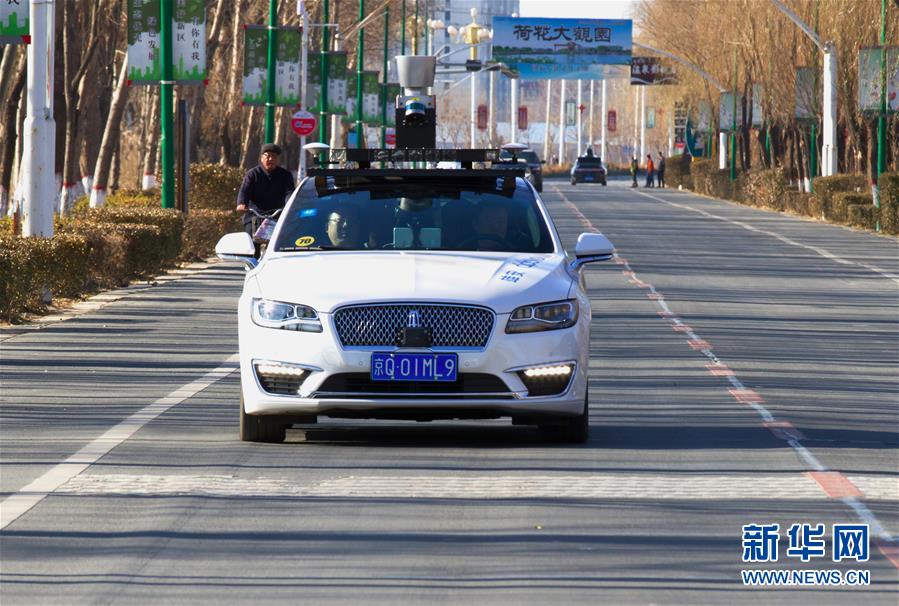 一輛百度Apollo自動駕駛車輛在雄安新區(qū)進行載人路測(2017年12月20日攝)。新華社記者 楊世堯 攝