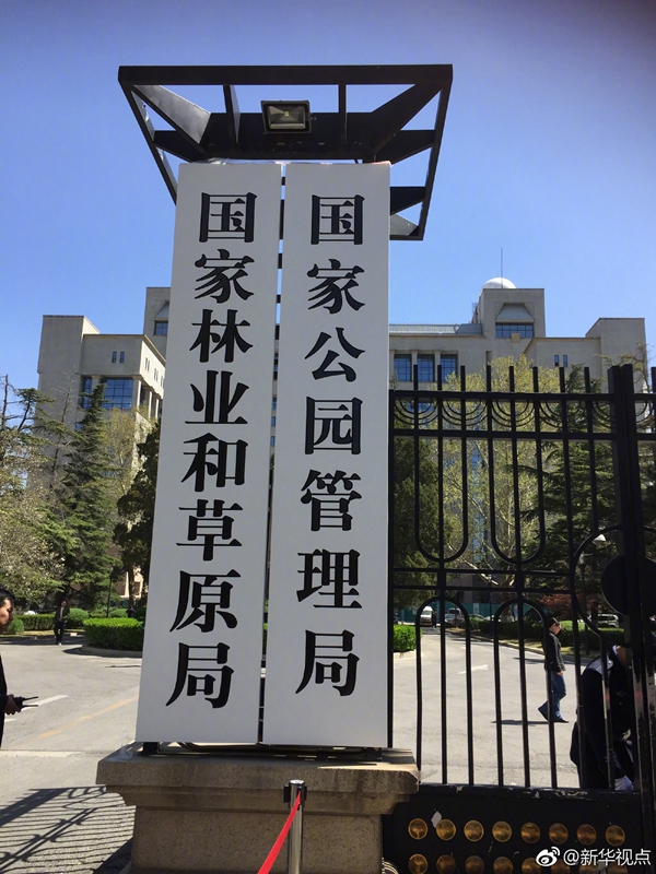 新華網(wǎng)北京4月10日電? 國(guó)家林業(yè)和草原局、國(guó)家公園管理局10日正式揭牌,由自然資源部管理,這對(duì)統(tǒng)籌山水林田湖草系統(tǒng)治理具有重要意義。(記者 侯雪靜 胡璐) ????(據(jù)新華社“新華視點(diǎn)”微博)