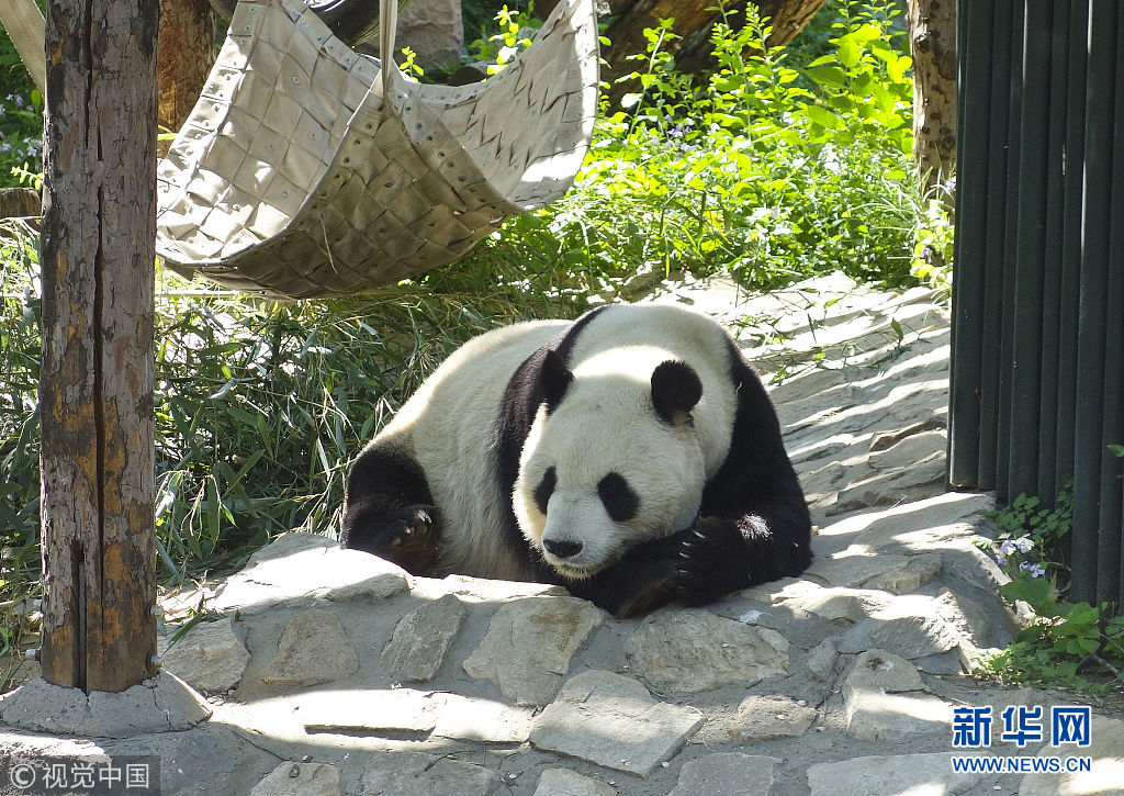5月2日,在動(dòng)物園內(nèi),熊貓曬著太陽(yáng),時(shí)不時(shí)伸個(gè)懶腰,翻個(gè)身,笨拙的動(dòng)作盡顯萌態(tài)。(圖片來(lái)源:視覺(jué)中國(guó))