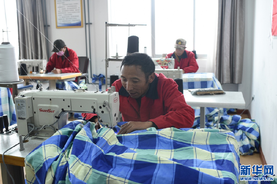 走出五保戶集中供養(yǎng)服務(wù)中心,對面就是錯那縣殘疾人就業(yè)中心。成立于2016年的殘疾人就業(yè)中心目前幫助16名建檔立卡貧困戶殘疾人解決了就業(yè)問題。每位殘疾人通過5個月的免費(fèi)培訓(xùn)就可以正式上崗,為一些學(xué)校制作校服,為各部門制作彩旗、藏裝、窗簾、救災(zāi)帳篷、旅游特色禮品等。每人每月能拿到2000-3500元不等的工資。