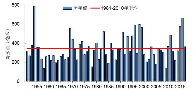 周兵:2018年華南前汛期于4月20日首先在廣西開始,較常年(4月6日)偏晚14天,近60年廣西首先開汛的年份只有5年:1963、1971、1990、1996和2018。3月到5月,華南地區(qū)的平均降水量較常年同期偏少36.9%,導致當?shù)爻霈F(xiàn)不同程度的氣象干旱。而6月初,4號臺風“艾云尼”3次登陸廣東,帶來了充沛的龍舟水,一定程度上緩解了旱情。