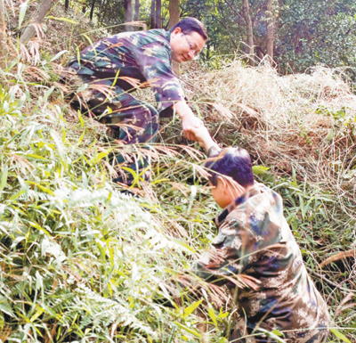 一次,護林員巡山回來報告,一處偏遠林地被人侵占,種了100多棵桉樹苗。許雄堅和工區(qū)長騎上摩托車,趕去現(xiàn)場。半道上,十幾個村民攔住他倆,不由分說,推倒摩托車,還持棒威脅說“誰敢動一棵桉樹就打殘誰”。